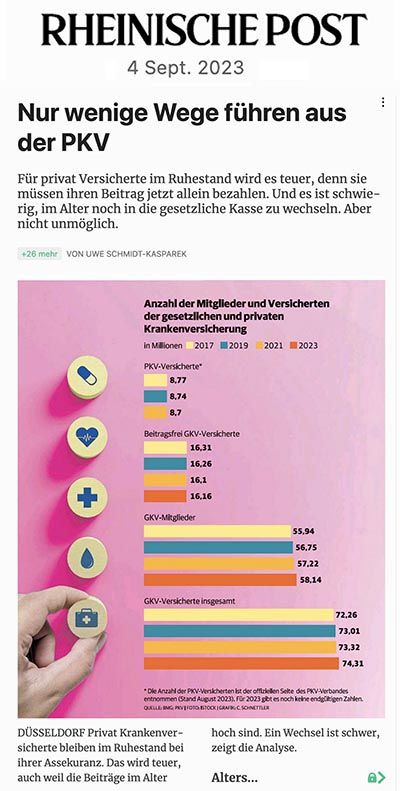 "Für privat Versicherte im Ruhestand wird es teuer, denn sie müssen ihren Beitrag jetzt allein bezahlen. Und es ist schwierig, im Alter noch in die gesetzliche Kasse zu wechseln. Aber nicht unmöglich.